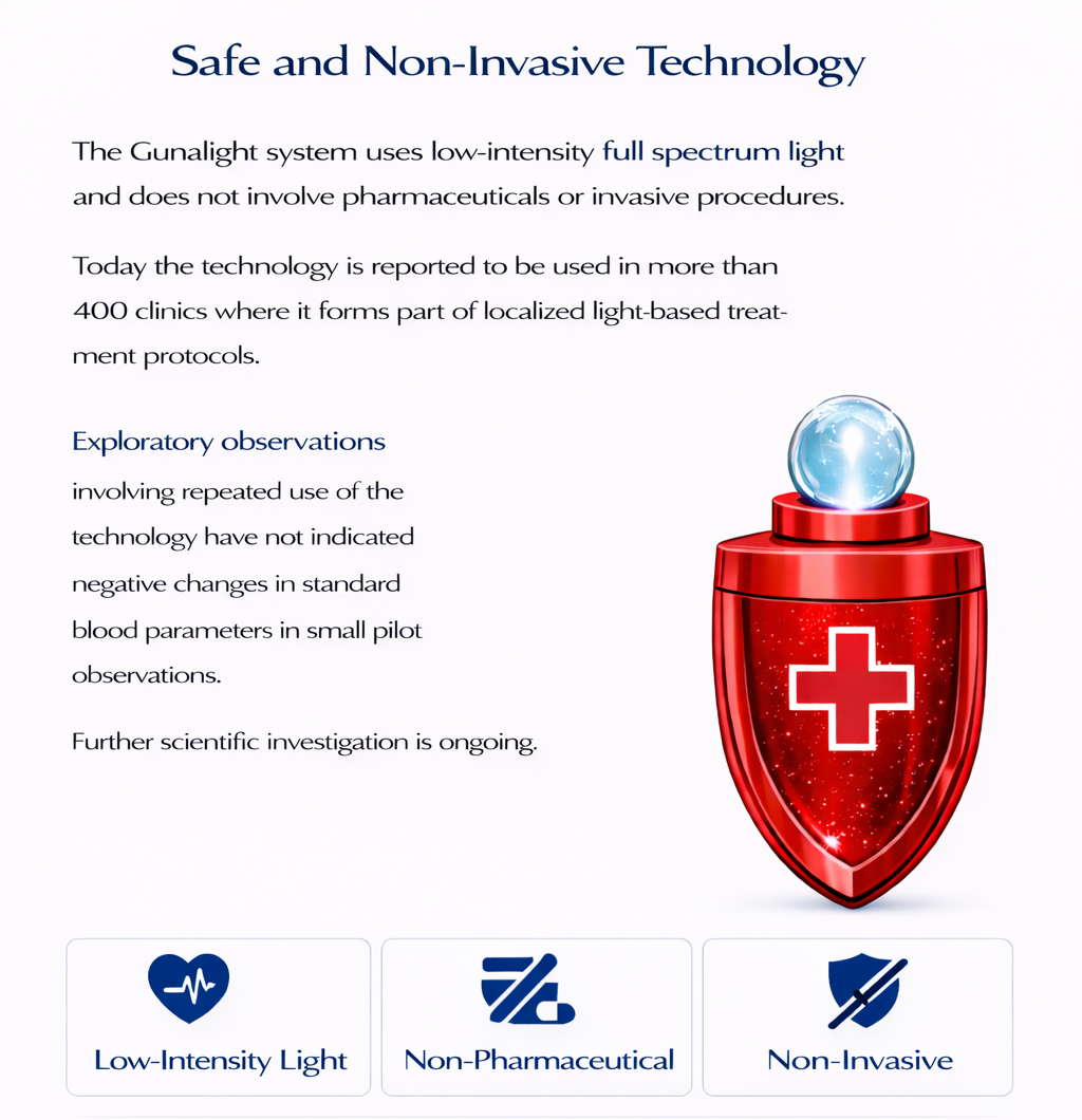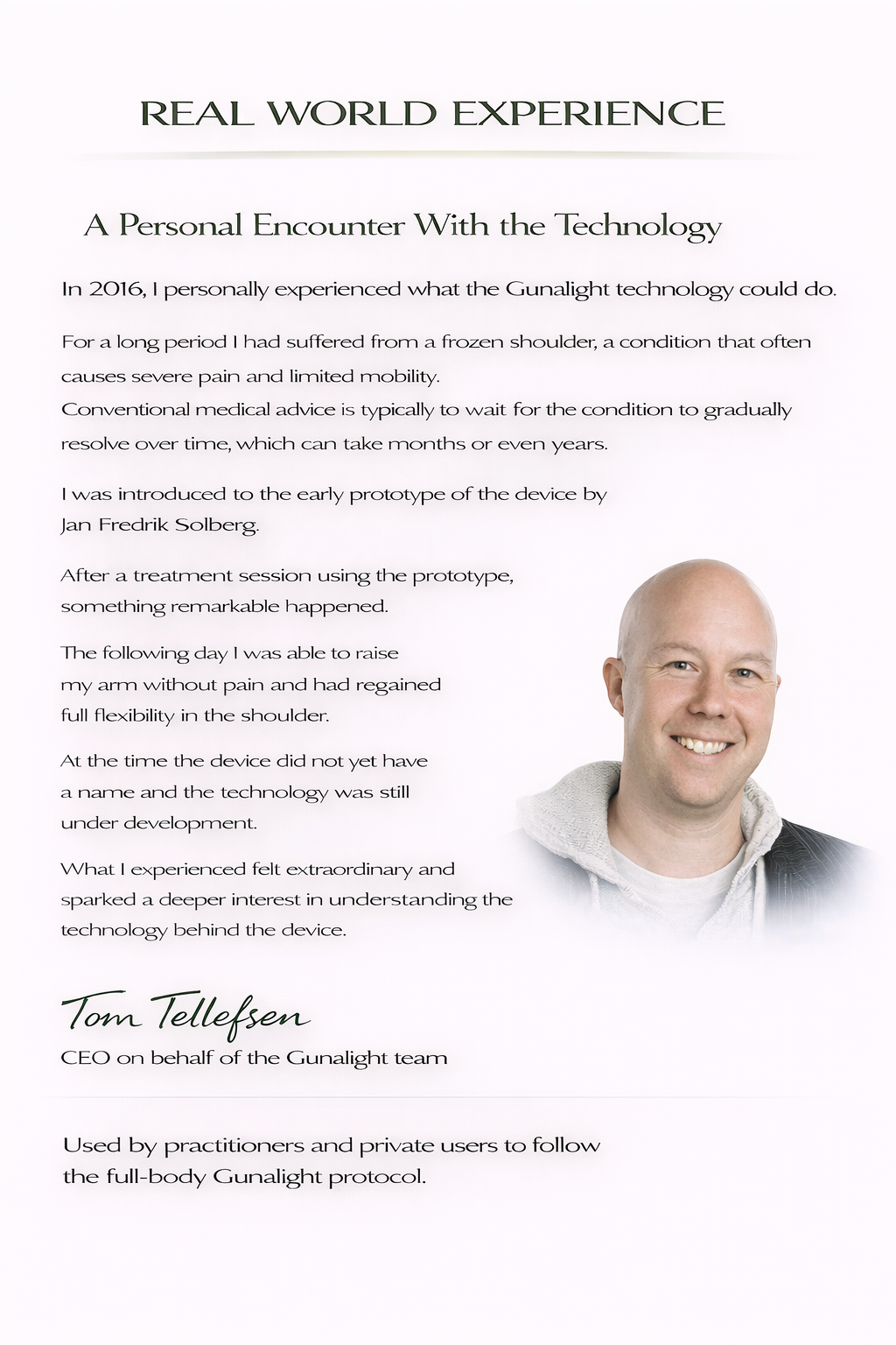 Legal Disclaimer – Gunalight Energy Therapy; In line with strict international legislation relating to the sale and distribution of products and services that can be perceived as alternative health, we are required to clarify the following: The information and services related to Gunalight Energy Therapy are not intended to diagnose, treat, cure or prevent any disease. Our products and forms of therapy are to be considered complementary, and not an alternative to traditional medical treatment. Gunalight Energy Therapy is an energy-based method that seeks to support the body's natural balance and well-being. We make no guarantees for results, as the effect may vary individually. The service is not intended to replace medical advice or treatment from authorized healthcare professionals. By using our products or services, you accept that this is done at your own risk. You disclaim Gunalight, its therapists and partners any responsibility for any physical, mental or emotional reactions that may occur following the treatment. We always recommend consulting a doctor or other authorized healthcare professional in case of illness or health complaints.